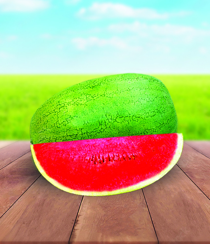 High quality attractive green oblong fruits. Rind is thin but tough, ideal for shipment. Fruit weight 12-14 kg. Bright red soft flesh brix 12, suitable for cultivation in semi drought condition saline tolerant.