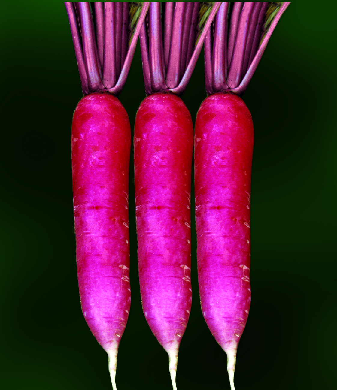 Attractive pink color cylinderical roots with blunt ends, pungent like Red Bombay. Heat-tolerant and can be grown round the year.