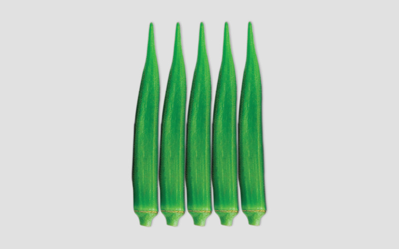 Short bushy Plants, highly tolerant to yellow mosaic virus, shiny green medium size fruits with prominent ridges, Average fruit bearing 50-55 fruits Plant.
