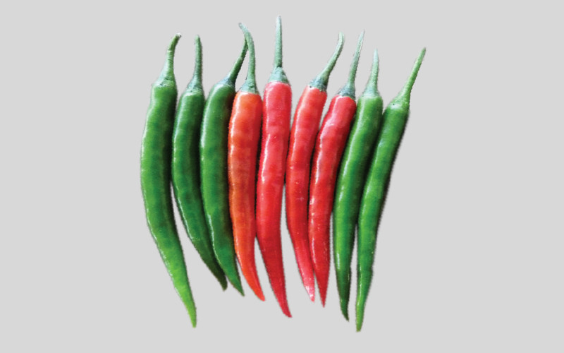 High yielding hybrid, proli c with bushy plant type. Tolerant to Virus, bacterial wilt and rain. Fruits are shiny green, straight; 8.5-9.0 cm long; high pungent.